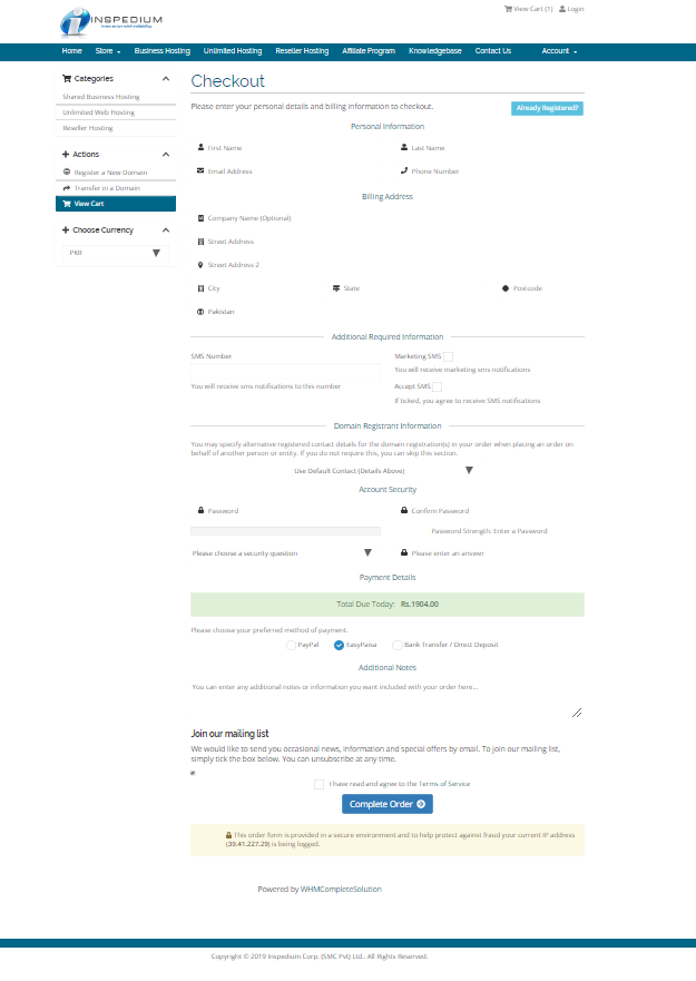 On this page you are required to fill in this form your personal information along with some other required details including payment detail . Once you done filling this click on ‘Complete Order’. Now as soon as your payment is done you have your own website available to you.