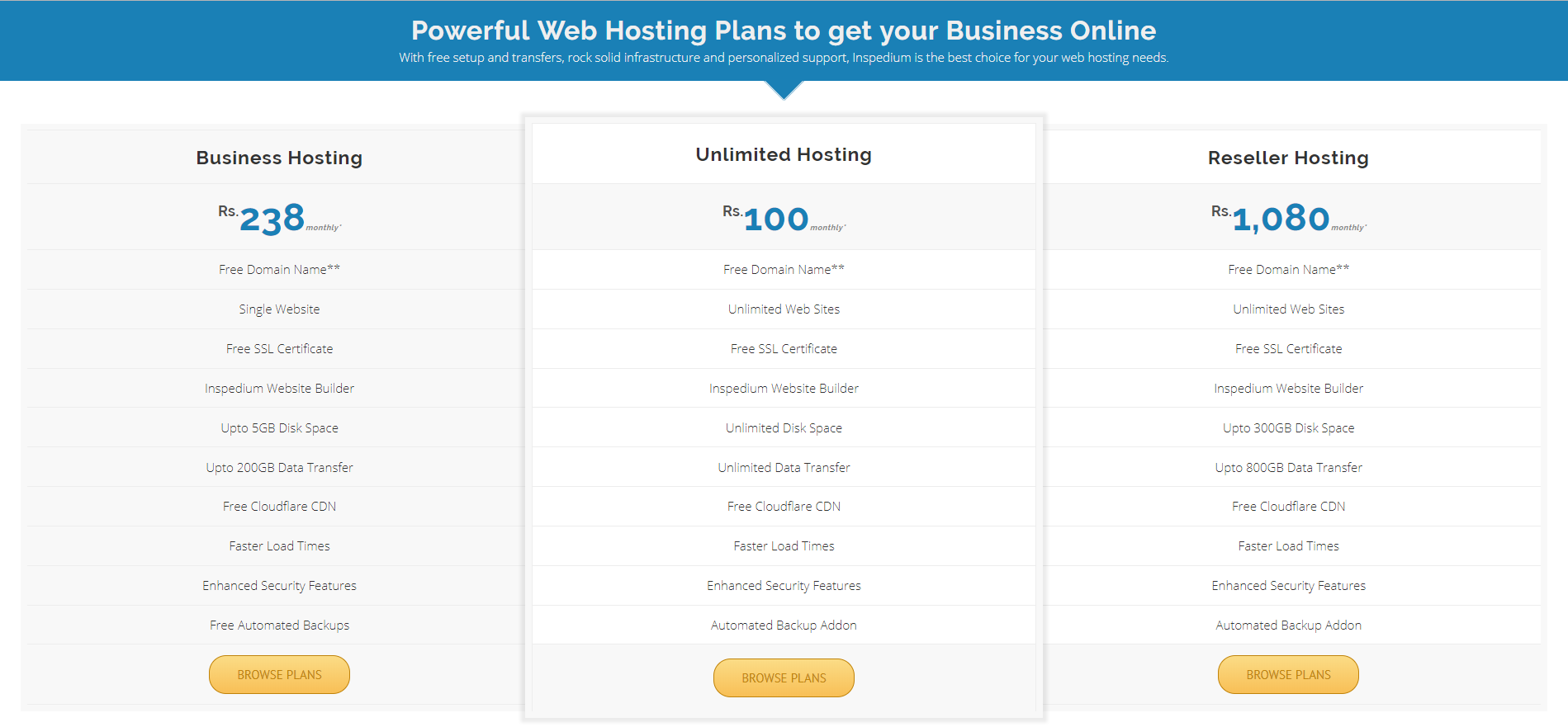 Inspedium provides its Customers with various cheap, easy and customized plans that perfectly suit your needs: